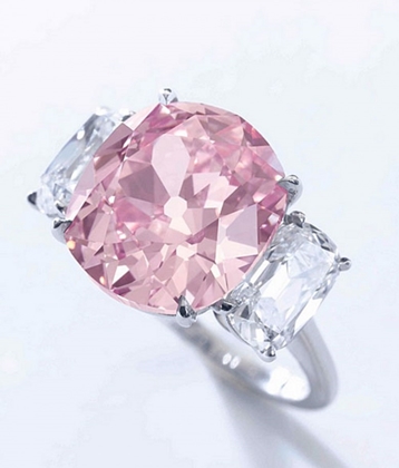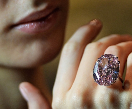 خاتم الألماسة الوردية 11.8 مليون دولار: هذه الألماسة النادرة المستخرجة من مناجم جنوب أفريقيا تزن حوالى 5 قراريط و لمعانها كفيل بأن يسحر أنظار الفتيات جميعاً بسبب أنوثتها ، بيعت في مزاد لـكريستيز في هونغ كونغ .
