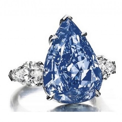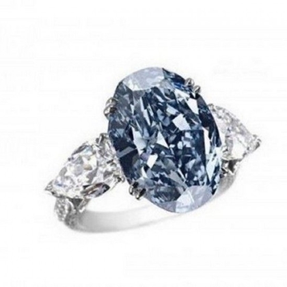 خاتم الألماسة الزرقاء 10 ملايين دولار : يتألف من ألماسة زرقاء بدرجة سماوية تزن 6.01 قراريط بقطع الوسادة ، محاطة من جانبيها بألماستين ورديتين بدرجة فاتحة على خاتم بلاتينيوم، بيعت في أحد المزادات في هونغ كونغ حينها طرحت بسعر 2.5 مليون دولار .