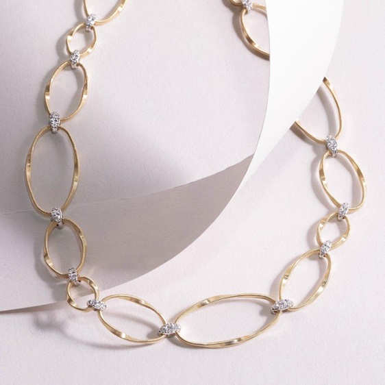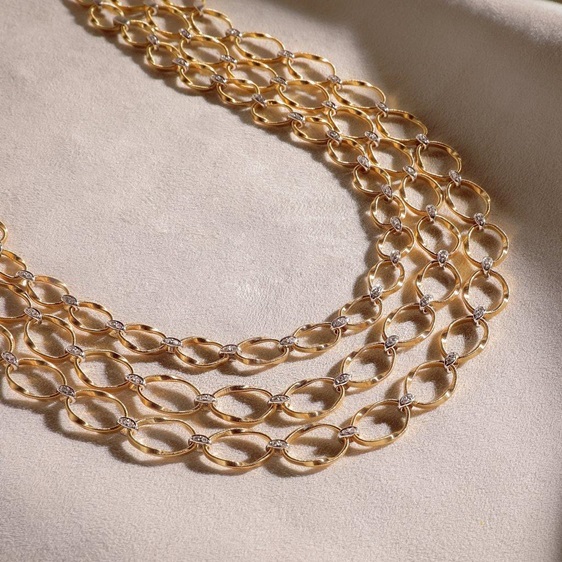 بدأت قصّة مجموعة مراكش في لحظة معيّنة من حياتي. كنت لا أزال أعمل في شركة والدي عندما رأيت سلسلة مهملة بسبب شائب ما، وجاهزة لتُذابت. في هذه اللحظة، خطرت في بالي فكرة رائعة! بنظري، أصبحت السلسلة بمثابة مفهوم جديد ومختلف للجمال: غير منتظمة، غير كاملة، وحتماً فريدة من نوعها. لقد تطلّب العمل على صنع مجموعة مراكش وقت طويل، حيث اضطررنا إلى إعادة صياغة مفهوم الإنتاج لدينا، ومررنا بالعديد من المحاولات والعديد من الأخطاء، كما أنّنا بدأنا من الصفر أكثر من مرّة. وأخيراً، نجحنا! وأخيراً وُلدت مجموعة مراكش الخلابة.