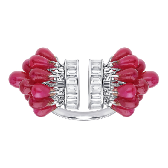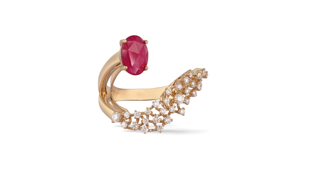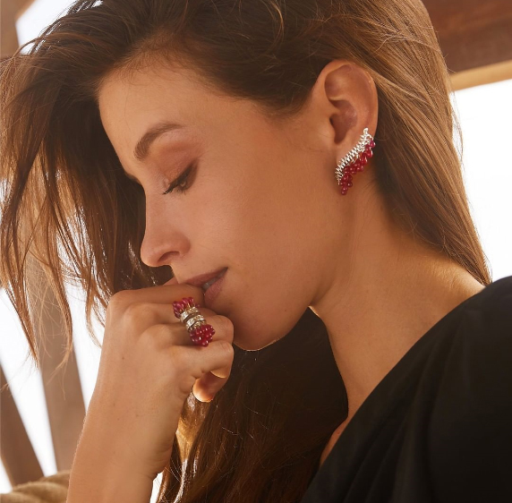 اخترنا من Nour by Jahan قلادة الشوكر Pure Passion Choker الخلابة بترصيعات الياقوت ذات اللون الأحمر الساحر مع الماس، ومن دار Amira Karaouli تأتينا أقراط Stars And Sunshine بتصميم جذّاب يُحاكي توهج النجوم بترصيعات الياقوت والماس. بينما خاتم Scatter Floating من مجوهرات ANANYA يتلألأ على أصابعكِ بأحجاره الماسية والذهب متوّجاً بقطعة زاهية من الياقوت.