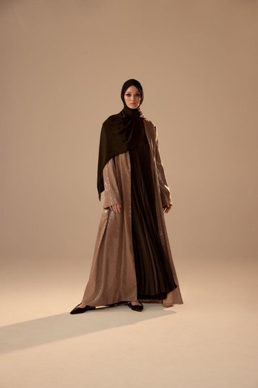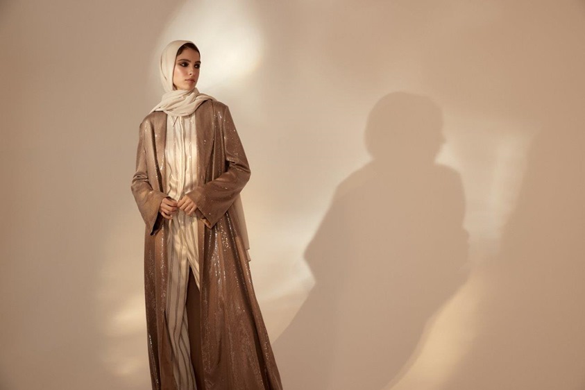 صُمّمت هذه المجموعة من أربعة أقمشة اختيرت بكثير من الدقة والعناية، وهي الحرير المجعّد الكلاسيكي، الحرير الرقيق الثمين، الصوف الناعم الصيفي المطرّز بخيوط من الترتر على شكل نقشات تقليدية والحرير اللامع المطرّز بالترتر باللون نفسه ليزيّن كل العباية ببريق يأسر الألباب.