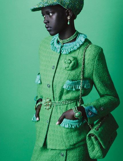 وتبرز أنماط شانيل لتبدو أشبه بلوحات مفعمة بالحيوية إذ يسلط اللونان الأسود والأبيض الضوء على الخطوط الغرافيكية للبدلات والمعاطف والسترات، المزينة بقبعات التويد من صانع القبعات ميزون ميشيل وزهور الكاميليا من تصميم ليمارييه. من ناحية ثانية، تعرض لوحة الألوان مجموعة واسعة من إمكانات التويد: بدءاً من سترة باللون الأخضر التفاحي مزينة بالضفائر والكروكيه من تصميم بالوما المتخصصة في صناعة الفلور، والتي ظهرت في العرض مع حقيبة 11.12 الشهيرة، إلى سترة أرجوانية مع أساور حريرية ومعطف برتقالي مع حقيبتها المطابقة. وتسلط هذه الحملة الضوء على الحوار المستمر بين فيرجيني فيارد وصانعي الأعمال الفنية، الذين يستجيبون لإلهام استوديو إبداع الدار في احتفال ببراعة الأزياء التاريخية، الحرفية والأنوثة الجريئة.