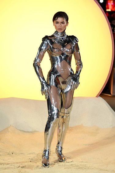 كما أبهرت زندايا عشاق الموضة بإطلالتها من تصميم تييري موغلر، إذ ارتدت بدلة "الروبوت" الأيقونية من مجموعة خريف/شتاء 1994-1995. كانت هذه الإطلالات بمثابة احتفال بالتاريخ الحي للأزياء، مما أضفى لمسة من الحنين والتميز على السجادة الحمراء.