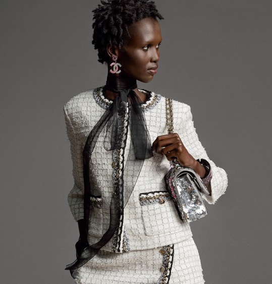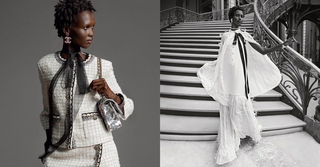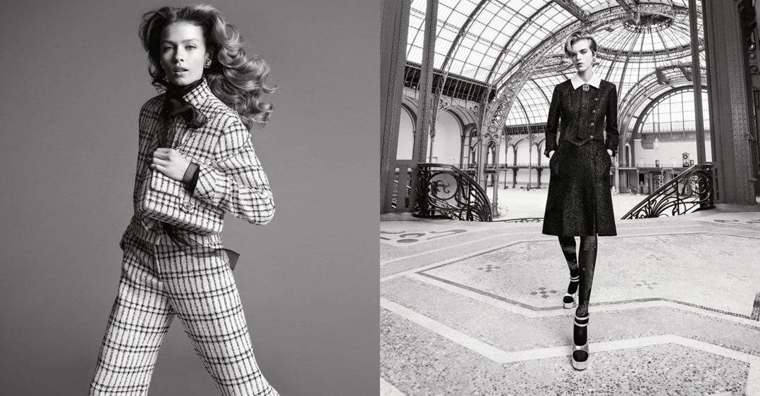 تستلهم شانيل هذا الموسم من هندسة قصر غراند باليه إبداعتها من التويد مع المربعات التي تذكرنا بسقفه الزجاجي على بدلة بنطلون وحقيبة 11.12 متطابقة بينما يعيد الفستان الأسود بأسلوب ربطة العنق والياقة البيضاء تفسير التويد بأجواء جرافيكية، وتتخلل الأناقة الكلاسيكية تفاصيل ثمينة مثل سترة بيضاء، وتنورة ملفوفة مزينة بضفيرة وأزرار مرصعة بالجواهر وشريط شيفون أسود طويل.