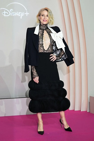 ننتقل إلى لوبيتا نيونغو، هذه الممثلة السمراء الحائزة جائزة أوسكار، خطفت الأنظار بفستان من الدانتيل المخرّم من Chanel تميز بتنورته الشفافة وقصته الأنثوية الرقيقة، في حين اختارت جنيفير لورانس فستاناً أكثر بساطة من Giorgio Armani، تمزي أيضاً بلونه الأسود وياقة الهالتر التي أضفت عليه بُعداً كلاسيكياً. أما زوي دوتش، فقد جمعت في إطلالتها بين الجرأة والشياكة، إذ جاء فستانها الأسود من Courreges مفتوحاً من جانبي الصدر، وتميز بخطوطه المستقيمة النظيفة، بينما تألقت نعومي واتس بفستان أسود مبتكر من Valentino، تمزي بتنورته المصممة على طريقة الطبقات الدائرية مع جزء علوي من الدانتيل الشفاف، بينما اختارت مايلي سايروس إطلالة عصرية بامتياز من YSL، تكونت من تنورة وسترة باللون الأسود ومصنوعين من الجلد اللامع.