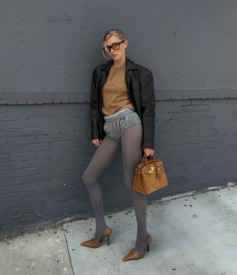 أبرز ما يميّز صيحة هذا الموسم هو التنوع اللافت في الخامات والتصاميم، ما يجعل الشورت قطعة عابرة للفصول والأنماط. الشورت الجلدي، مثلاً، يظل الخيار الأكثر جرأة وأناقة في آن واحد. نسّقته ليلا موس مع توب شفافة وبوت بايكر في إطلالة تجمع بين التمرّد والأنوثة، فيما ارتدته أخريات مع بليزر مهيكل لإطلالة مكتبية عصرية.