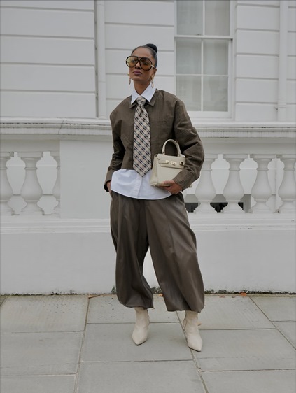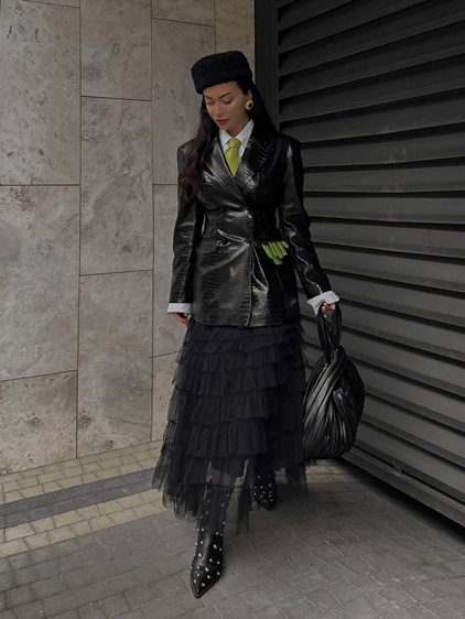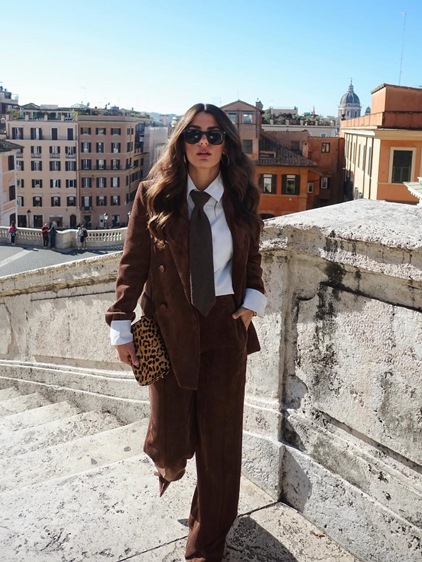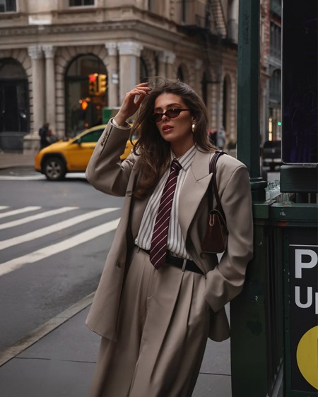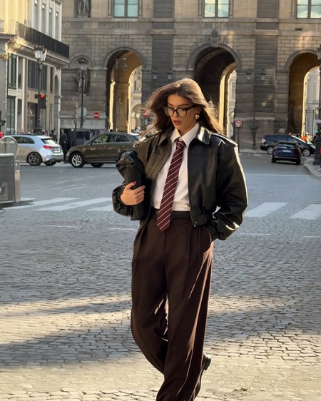 أما في ما يخص طرق تنسيقها، فقدمت الفاشنيستات في الموضة العالمية مجموعة واسعة من الأفكار التي يسهل تبنيها في الحياة اليومية. يمكن ارتداء ربطة العنق مع قميص أبيض كلاسيكي وبليزر واسع لإطلالة مهنية بامتياز. كما يمكن اعتمادها بأسلوب أكثر عصرية مع بلوزة ناعمة لإضافة لمسة ذكورية تكسر روتين الإطلالة. بعضهن نسّقنها مع معطف طويل وبنطال واسع لإطلالة ستريت ستايل تشبه الصور المتداولة هذا الموسم، بينما فضّلت أخريات تنسيقها مع جاكيت جلد لإضفاء طابع جريء وشاب. كما يمكن اللعب على تفاصيلها من خلال اختيار خامات غير تقليدية أو ألوان حيادية دافئة أو نقوش كلاسيكية مثل الخطوط المائلة أو المربعات الصغيرة.