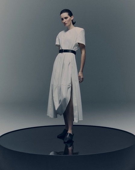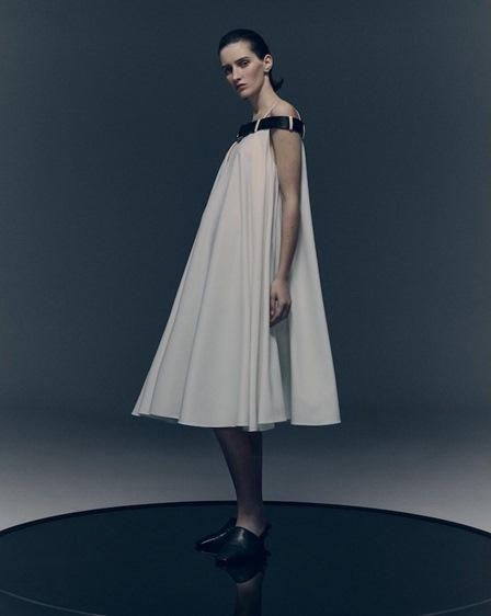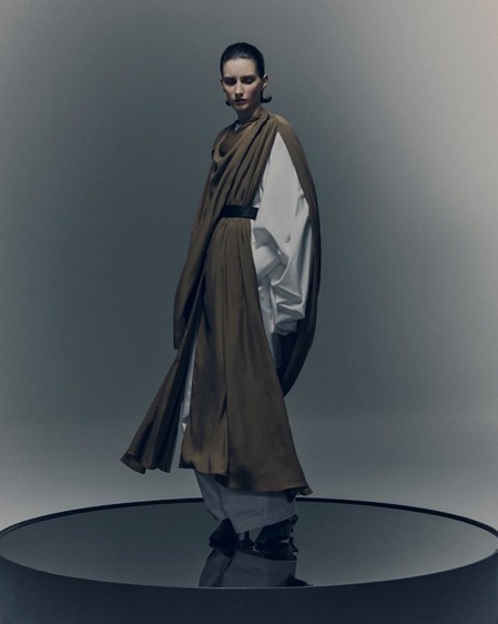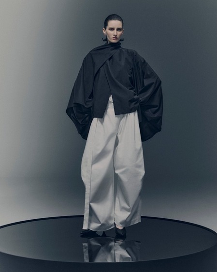 كانت القطع معبرة بحد ذاتها: تدرجات أحادية اللون تذكرك بسكون الصحراء، وأشكال تشبه الأجنحة ترمز إلى الحرية والتحليق. كان هناك تزاوج مذهل بين القوة النحتية للتصميم ومرونة الأنوثة التي تجسّدها القطع. كل ثوب كان وعاءً يحمل قصة، وكل طيّة كانت تحمل إرث قرون من الحرفية والرواية، وذلك بفضل التعاون مع الأختين وقار.