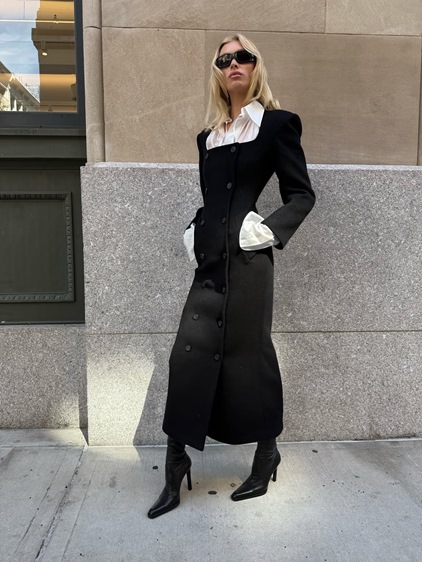 يبدو أن اللوحة اللونية للـ Office Siren تميل إلى البساطة الفاخرة، وعلى رأسها اللون الأسود بلمعاته المتعددة، من المات إلى الحريري. الأحادية تضيف إحساساً بالثبات والقوة، بينما تتولى الإكسسوارات لعب الدور الحاسم: حذاء مدبّب، حقيبة بحجم صغير، نظارات شفافة، أو مجوهرات متقنة التصميم. كلها عناصر تُكمّل الإطلالة من دون أن تطغى عليها.
