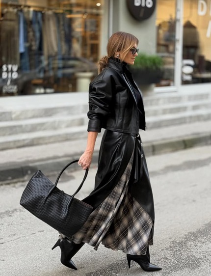 ما يميزها في هذا الموسم هو قدرتها على التأقلم مع مختلف الأساليب. نراها في إطلالات الشارع منسّقة مع معاطف جلدية طويلة لخلق تباين لافت بين نعومة المربعات وصلابة الجلد. ونراها أيضاً في الإطلالات الرسمية، حيث تُمنح حياة جديدة عندما تترافق مع جاكيتات مصممة بعناية وأحذية عالية تضيف إليها لمسة من الجمال والقوة. وعلى منصات العروض، ظهرت بقصّات غير تقليدية، مع تفاصيل معدنية أو حزام جانبي يمنحها لمحة عصرية تخطف الأنظار.