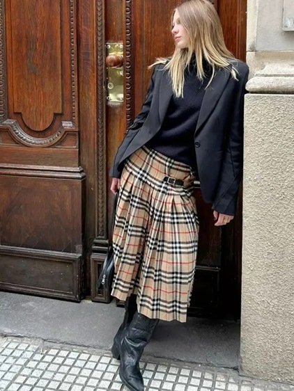 التنورة المربعة، التي ارتبطت طويلاً بالمدرسة البريطانية التقليدية وبالزي الاسكتلندي، تجاوزت اليوم تلك الصورة البسيطة لتصبح قطعة متعددة الهوية. المصممون أعادوها إلى الواجهة عبر قصّات متجددة، أطوال متفاوتة، وأقمشة أكثر سماكة وانسيابية، ما منحها بُعداً حداثياً دون التخلّي عن روحها الأصيلة. لم تعد مجرد تنورة بنقشة كاروهات، بل أصبحت قطعة تعبّر عن ذوق يوازن بين الجرأة والحنين، بين الماضي والحداثة.