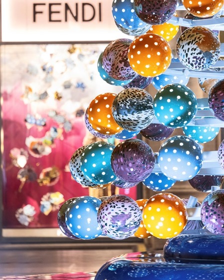 ولا تكتمل الرحلة من دون زيارة ساحة لارغو غولدوني في روما، حيث تكشف FENDI عن شجرتها الاحتفالية أمام بوتيك Roma Palazzo . رؤية معاصرة للشجرة التقليدية، بهيكل معدني عاكس تتدلّى منه كرات زجاجية ملوّنة تعكس لوحة ألوان جريئة من الفيروزي واليوسفي إلى الأزرق الصخري والزهري الناعم. هنا، يصبح الجمال تجربة سفر، وتتحوّل زيارة متاجر FENDI خلال الأعياد إلى محطة لا غنى عنها لكل عاشقة للأناقة والدهشة.