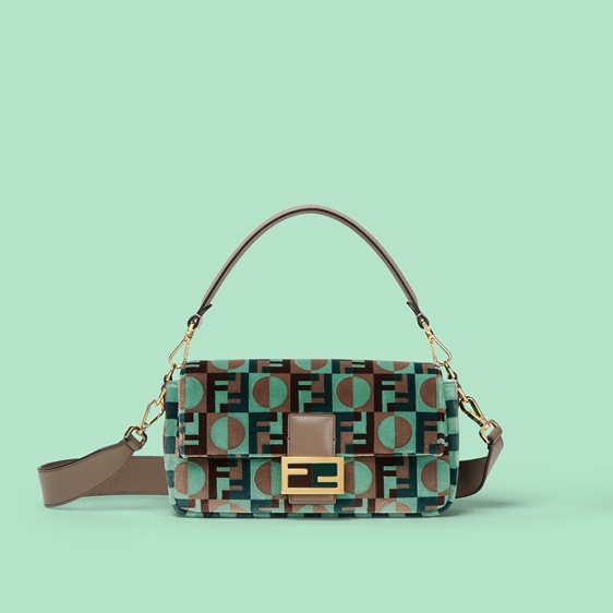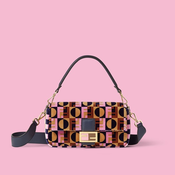 تركز المجموعة على أبرز أيقونات الدار، حيث تشمل حقيبتين من طراز باغيت الشهيرة وحقيبة بيكابو واحدة، صممت جميعها لتعكس الروح المبهجة والأنيقة التي اشتهر بها المسلسل. وتأتي كل قطعة مزينة بعلامة خاصة مصنوعة من نسيج فاخر محبوك بنقوش بارزة، تحمل نقشة FENDI Dots التي تجمع بين شعار الدار FF ونقاط البولكا المستوحاة من فن الآرت ديكو، لتضفي لمسة فنية تجمع بين الكلاسيكية والحداثة. وتتوفر الحقائب بألوان متباينة تجمع بين البني والوردي، أو الرمادي الحميمي والأخضر النعناعي، ما يمنحها جاذبية خاصة تلائم أسلوب الشخصيات في المسلسل.