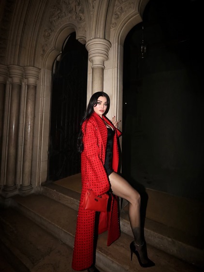 في عرض جورج حبيقة، ظهرت هيفاء بإطلالة ملفتة جمعت بين الأحمر الناري والأسود الكلاسيكي: معطف طويل أحمر لامع فوق فستان أسود أنيق، مما منحها حضوراً قوياً يعكس روح الهوت كوتور الشرقية بلمسة عصرية راقية. هذا التنسيق لم يسرق الأضواء فحسب، بل جعلها نقطة جذب لكل عدسات المصورين والمراقبين، معبّراً عن شخصيتها القوية والمتحكمة في اختياراتها.