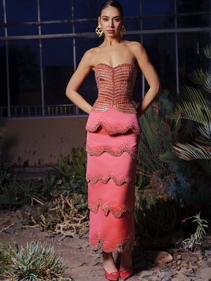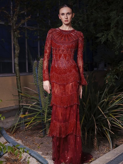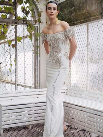 في مجموعته الجديدة لربيع وصيف 2026، يقدّم رامي قاضي Elementa كعمل كوتور متكامل يستلهم قواه من العناصر الأساسية للطبيعة: النار، الماء، الأرض، الهواء، والحياة. لكن ما يميّز هذه المجموعة هو رفضها للتصنيف المباشر، فالعناصر لا تُختزل في فستان واحد، بل تتقاطع وتتشابك، تماماً كما تفعل في الطبيعة. Silhouettes منحوتة توازن بين الصلابة والسيولة، وبُنى متعددة الطبقات تتحرّك بانسجام مع الجسد، في حوار دقيق بين السيطرة والانسياب. التطريز هنا لا يتبع أنماطا تقليدية، بل يتخذ لغة تجريدية، مدموجة مباشرة في بنية القطعة باستخدام الترتر، الخرز، الكريستال، الخيوط المعدنية، الحرير والرافيا، لتبدو الفساتين وكأنها لوحات فنية قابلة للارتداء، لا مجرد تصاميم احتفالية.
