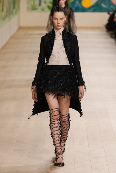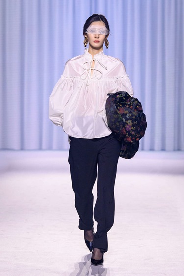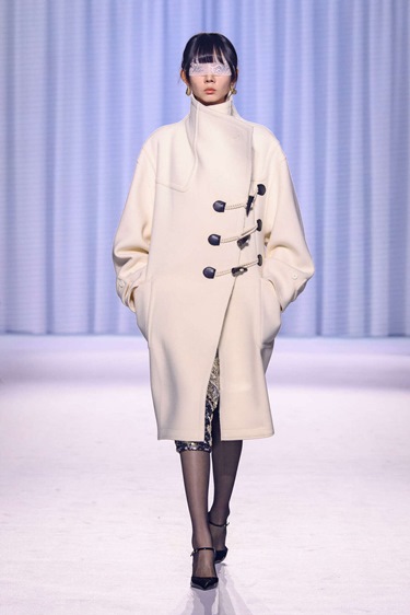 هذه القطع تضيف فخامة فورية للإطلالة، سواء ارتديتها مغلقة فوق Polo neck نحيف أو قميص أبيض ناصع. حتى الـ Cape، ورغم تحفظي الدائم عليه، يبدو مقنعاً هذا الموسم عندما يأتي بقصّة قصيرة وFunnel-neck مع أزرار ذهبية وتفاصيل مستوحاة من الزي العسكري.