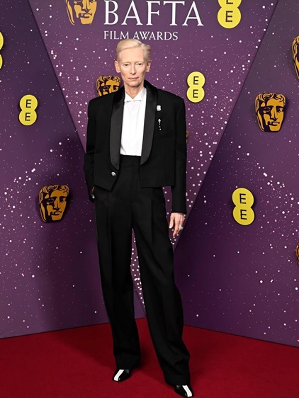 تيلدا سوينتون كانت من المفضلات لدي شخصياً، ببدلة توكسيدو سوداء ذات قصّة مربعة من مجموعة Pre-Fall 2026 . تصميم قد يبدو صارماً على أخريات، لكنها حملته بثقة نادرة جعلته يبدو امتداداً لشخصيتها. أما غرايسي أبرامز فقد اختارت فستاناً بسيط الخطوط، مع تطريزات دقيقة تولت مهمة الإبهار، في خطوة تعكس تطور حضورها على السجادة الحمراء.