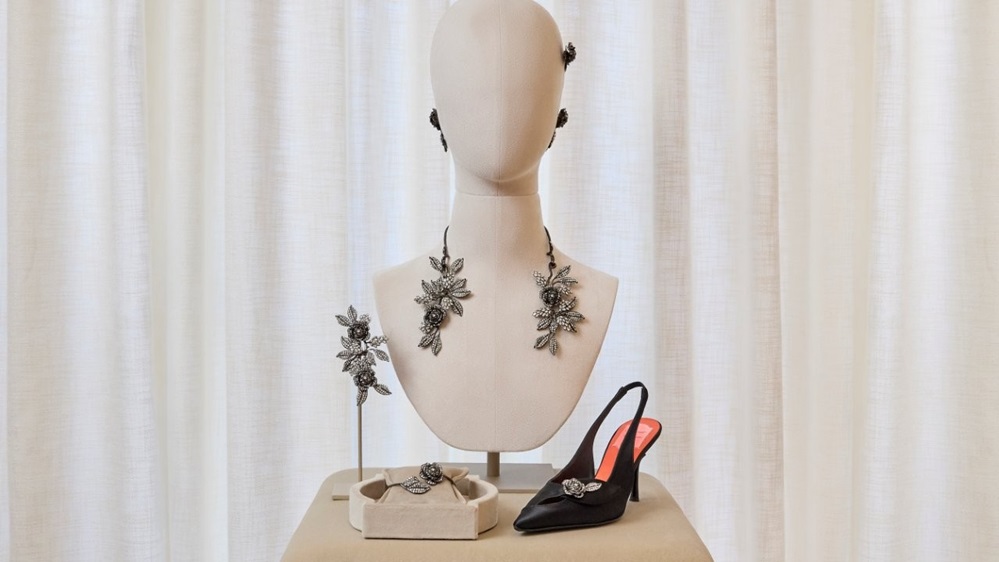 ولا تقتصر المجموعة على الأحذية، إذ أعادت الدار تقديم خط Rose Vivier مع حقيبة جديدة تُزيَّن ببتلات جلدية تُقص وتُثبت يدوياً لتشكّل سطحاً ثلاثي الأبعاد. كذلك يعود تصميم Belle Vivier الكلاسيكي عبر أحذية slingback وحقائب clutch بمواد جديدة، مع الحفاظ على المشبك الهندسي الذي يعد من أبرز رموز الدار.