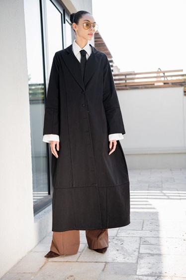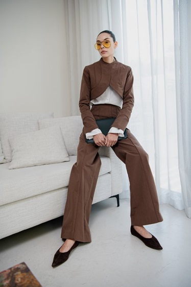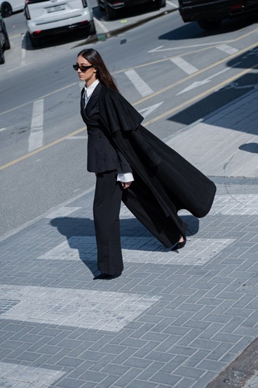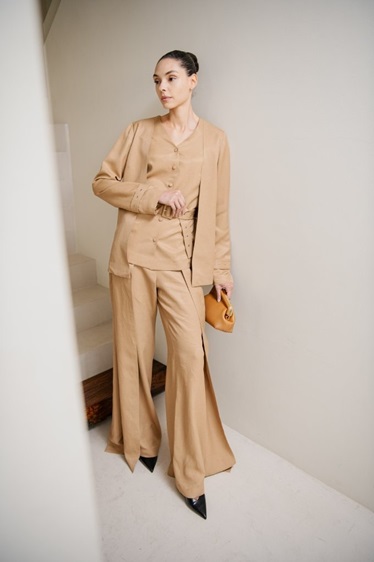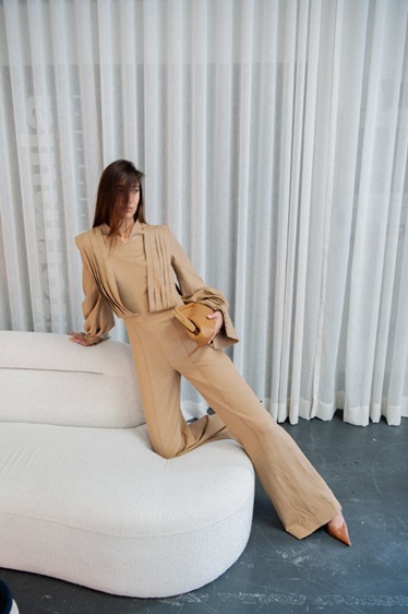 المجموعة تبدو وكأنها محاولة واعية لإعادة التفكير في الأنوثة المعاصرة، خصوصاً من زاوية التوازن بين القوة والنعومة. الخطوط ناعمة لكنها محدّدة، والقصّات تبدو بسيطة للوهلة الأولى، لكنها مبنية بدقّة هندسية واضحة. المعاطف الواسعة والقطع الخارجية المصمّمة بأسلوب معماري تمنح الإطلالة حضوراً قوياً، بيمنا تأتي الفساتين بانسيابية هادئة تتحرّك مع الجسم بطريقة طبيعية جداً. حتى الأطقم والجُمبسوت تبدو كأنها صُمّمت لترافق المرأة طوال اليوم، من الصباح إلى المساء، من دون أي مجهود في التنسيق.