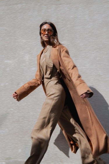 ومن الواضح أن تأثير البيئة المحيطة كان أساسياً في تشكيل هوية المجموعة. الألوان مستوحاة من الصحراء، لكن بطريقة بعيدة عن الكلاسيكية المتوقعة. درجات الرمل الدافئة، والبني العميق، والأسود القوي تظهر في توازن مدروس، وكأن التركيز الحقيقي ليس على اللون نفسه بل على الشكل والحجم والحركة. هذا التوجّه يعطي المجموعة طابعاً هادئاً لكن قوياً في الوقت نفسه، خصوصاً أن كل قطعة تبدو وكأنها مصمّمة لتبقي لسنوات وليس لموسم واحد فقط.