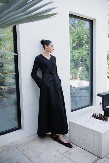 اللافت أيضاً أن التفاصيل هنا لا تُستخدم للزينة فقط، بل كجزء أساسي من الفكرة. الطيّات المنحوتة، والأحزمة الموحّدة اللون، والبناء الطبقي للقطع تضيف عمقاً بصرياً من دون أن تُفسد هدوء التصميم. وحتى عندما تبدو القطعة بسيطة، نكتشف أن شكلها يعتمد على توازن دقيق بين الحجم والبنية والحركة، وهذا ما يمنحها شخصية واضحة من دون مبالغة.