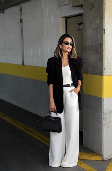 4. البنطلون الأبيض مع بلايزر أسود: قوة وأناقة حضرية