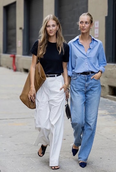 2. الجينز الواسع مع بلوزة ناعمة: توازن بين الصلابة والرقة