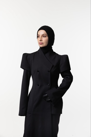 في ملابسي، المرأة ليست متباهية، لا تصرخ لتلفت الانتباه، لا تحتاج لارتداء ألوان نيون لتُلاحظ. هي هادئة وواثقة. الخطوط النظيفة في القصّة، ظهر مستقيم، وأكتاف ملموسة تقول: "أنا واثقة ومرتاحة". الألوان الهادئة في ملابسي هي أسلوب. الأسود دائماً على الموضة، دائماً مناسب، ويجذب الانتباه دائماً. الأسود هو لون العلامة. المرأة في ملابسي تقول: "أنا شخص واثق من نفسه وملابسي تؤكد هويتي فقط".