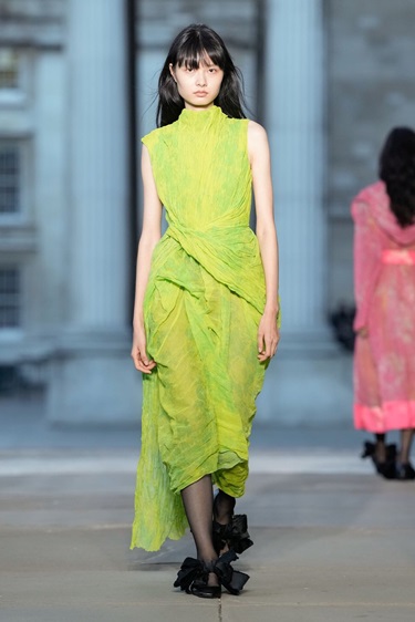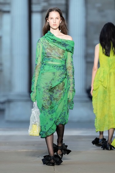 ومن المطبخ إلى الثقافة الشعبية، يظهر الأخضر الشارتروز أو ما يُعرف بـBrat coded كأحد أبرز الألوان التي تحمل دلالات ثقافية. هذا اللون، الذي اكتسب زخماً بعد ألبوم Brat لـCharli XCX، وجد طريقه إلى منصات Valentino وVersace في Valentino، تحوّلت البلوزات الدانتيل الناعمة إلى قطع جريئة بفضل هذا اللون، بينما قدّمته Versace في فساتين حريرية ضيّقة تعيد تعريف الأنوثة العصرية. إنه لون لا يمر مرور الكرام، بل يفرض حضوره بثقة.