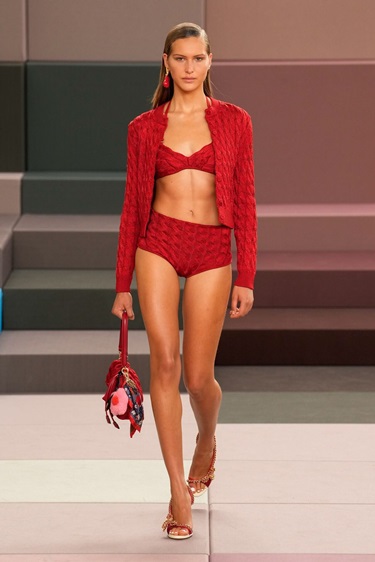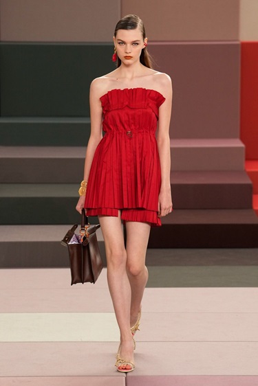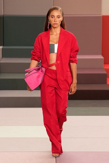 أما أحمر الطماطم Tomato Red، فيشكّل أحد أكثر الاتجاهات حيوية هذا الموسم. بعيداً عن درجات النبيذي العميقة، يأتي هذا الأحمر بنفحة منعشة وجريئة، كما رأيناه في عروض Loewe وFendi. تم توظيفه في تصاميم عملية مثل السترات الرياضية والبدلات الرسمية، ما أضفى عليها طابعاً لافتاً. إنه لون يعبّر عن تحوّل في الذائقة، حيث لم تعد الجرأة مرتبطة بالمناسبات فقط، بل أصبحت جزءاً من الإطلالة اليومية.