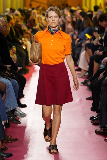 وأخيراً، يبرز البرتقالي المحروق Burnt Tangerine كأحد أكثر الألوان إثارة للجدل هذا الموسم. رغم أنه لم يكن يوماً الخيار الأول للكثيرات، إلا أن المصممين أعادوا تقديمه بطرق مقنعة، كما في عروض Ferragamo وLoewe وValentino . من التنانير الجلدية اللامعة إلى المعاطف الخفيفة والبلوزات الواسعة، أثبت هذا اللون أنه قابل للتكيّف مع أنماط مختلفة، شرط تنسيقه بذكاء.