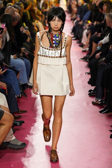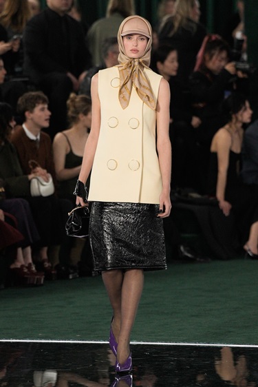 أما في عرض Chanel، فظهر الوشاح ضمن فساتين رومانسية بطبعات ناعمة، بينما قدّمت Miu Miu نسخاً أكثر ذكاءً، حيث تم تنسيقه كربطة أنيقة تحت السترات الصوفية أو فوق القمصان البولو. النتيجة كانت مزيجاً مثالياً بين الأناقة الكلاسيكية والطابع العملي العصري.