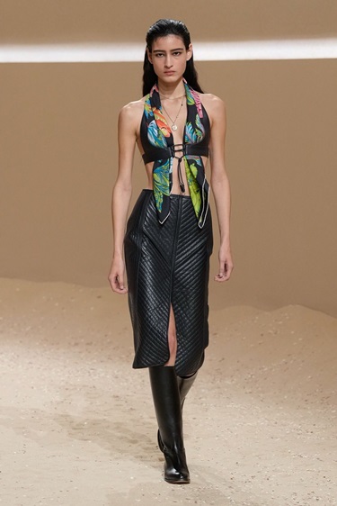 المفاجأة أن الظاهرة لم تقتصر على دار واحدة. خلال الصيف نفسه، ظهرت أوشحة الحرير على الجميع تقريباً، من أليسكا تشانغ إلى كايلي جينير، حيث تم تنسيقها كتنورة صغيرة فوق البنطلون أو الشورت. ثم جاءت عروض الربيع في لندن وباريس وميلانو لتؤكد أن الوشاح أصبح قطعة محورية. في عرض Hermès مثلاً، أعادت المديرة الإبداعية تفسير الوشاح الكلاسيكي بأسلوب جريء عبر إدخاله في إطلالات جلدية حديثة. أما في عرض Gucci، فقد ظهر وشاح الرأس الشهير للدار مع تفاصيل مبتكرة تضيف له طابعاً عصرياً غير متوقّع.