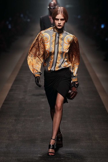 أكثر ما يميّز عودة الوشاح الحريري هذا الموسم هو أنه لم يعد يُستخدم بالطريقة التقليدية. لم يعد مجرّد قطعة أنيقة تُربط حول الرقبة، بل أصبح أداة أسلوب حقيقية يمكن تحويلها إلى عشرات الإطلالات. في عروض Dries Van Noten مثلاً، تم لفّ الأوشحة حول الخصر فوق البنطلون بأسلوب يشبه الباريو، وكأنها قطعة مصمّمة للانتقال من المكتب إلى السهرة بسهولة. في المقابل، قدّمت Versace قمصاناً بطبعات أوشحة حريرية مستوحاة من أسلوب الثمانينيات المليء بالجرأة واللمعان.