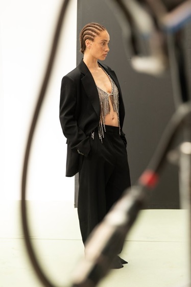 أما الإكسسوارات، فتشكّل محوراً أساسياً في هذه التجربة. ستة تصاميم من الحقائب تتراوح بين العملية والجريئة، من بينها حقائب كتف صغيرة وأخرى كبيرة، وصولاً إلى تصميم بلون الشوكولاتة مع سلسلة معدنية مميزة. وتستمر سلسلة فالابيلا كعنصر توقيع، لتظهر في الأقراط والقلادات وحتى في تفاصيل الأحذية المسطّحة.