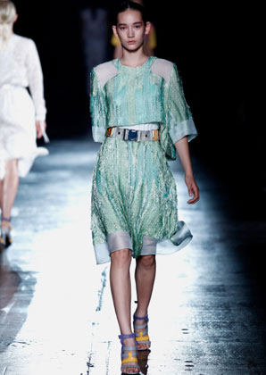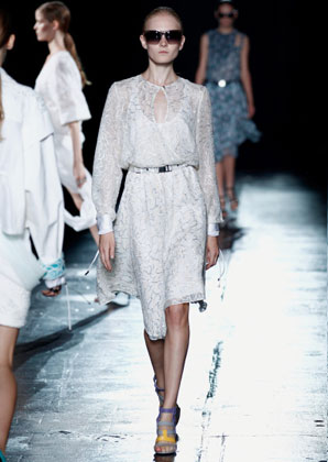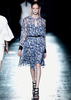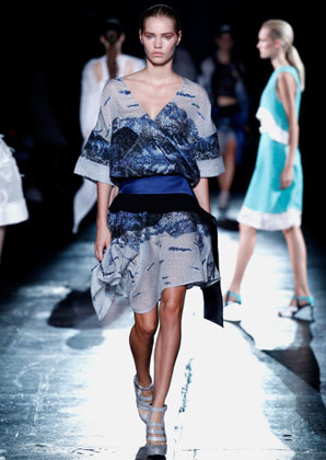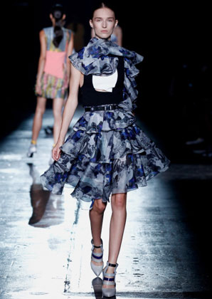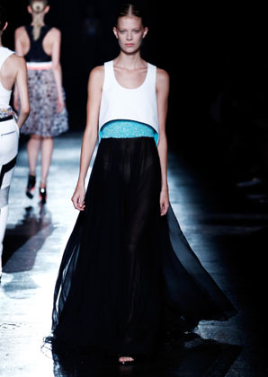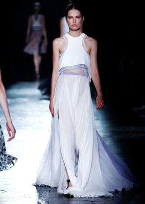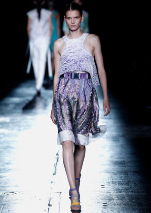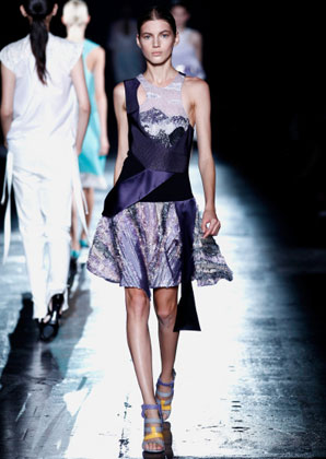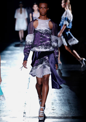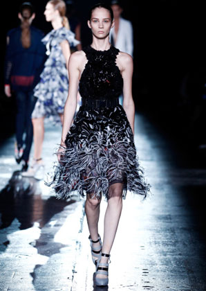 بعض من تصاميم Prabal Gurung التي عرضت على مدرج عرض أزياء أسبوع الموضة في نيويورك أمس بدت كأنها جاءت مباشرة من الطبيعة، مثل فستان من دون أكمام مع نقوش من الطبيعة وريش نعام وأزهار من الأورغانزا المقصوص يدويًا على التنّورة.