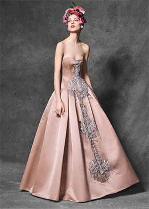 في الواقع، شكلت الفساتين ذات التنانير الضخمة الواسعة نقطة التركيز في هذه المجموعة، إذ جاءت مترفة وراقية ومستوحاة من أميرات القصور الأرستقراطية في أوروبا في بداية القرن العشرين.