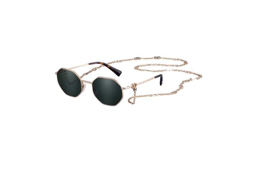 تتمتع بتصميم مثمّن من المعدن الذهبي، مع عدسات باللون الأخضر الداكن أو الوردي الشاحب. يصبح الموديل فريداً من نوعه بفضل توقيع شعار V الثلاثي الأبعاد ويُمكننا أن نعلق فيه سلسلة قابلة للإزالة.