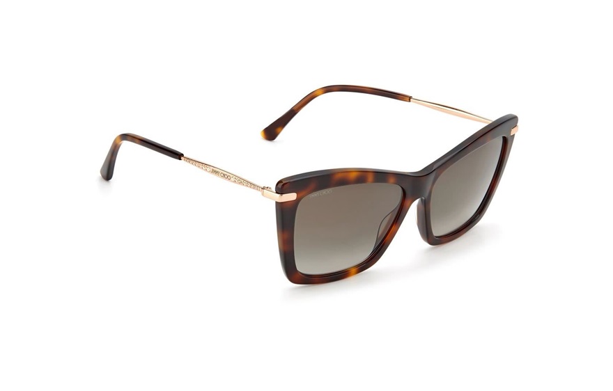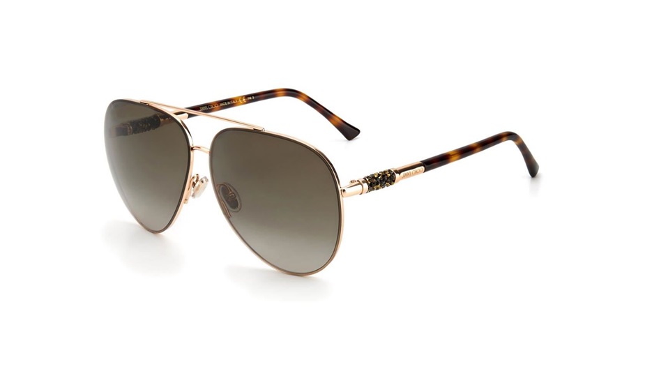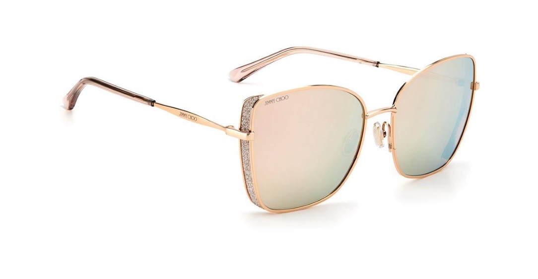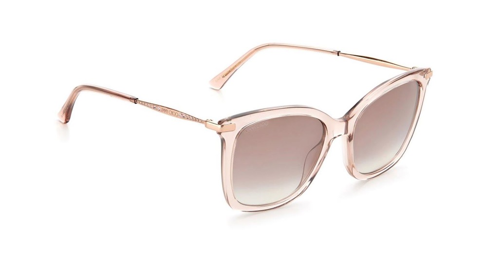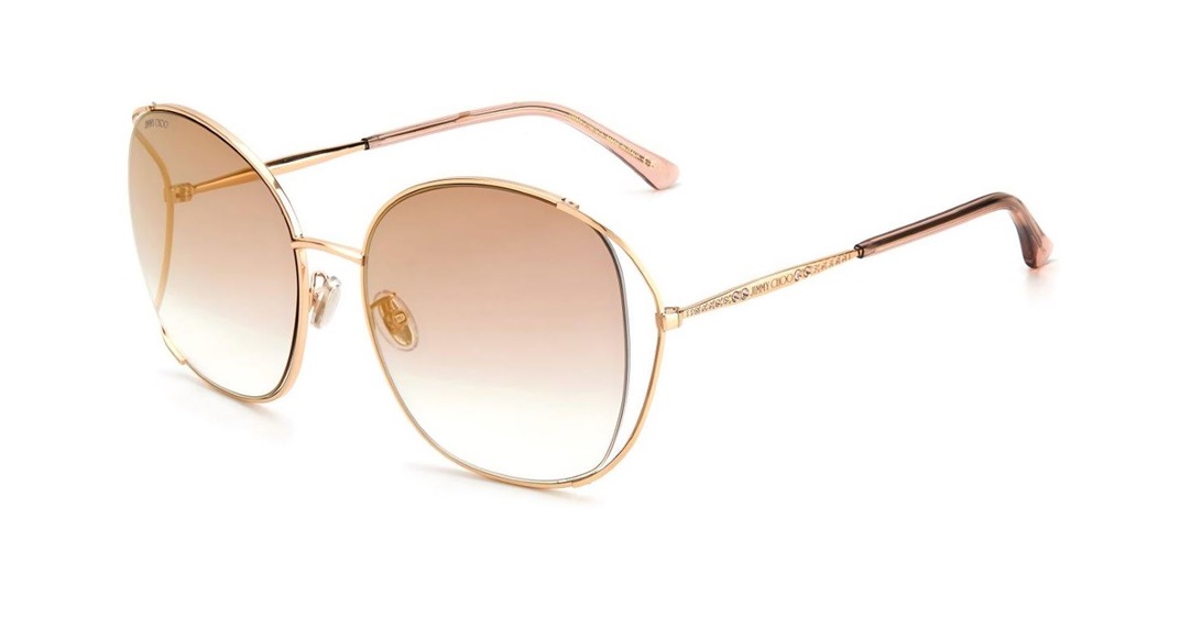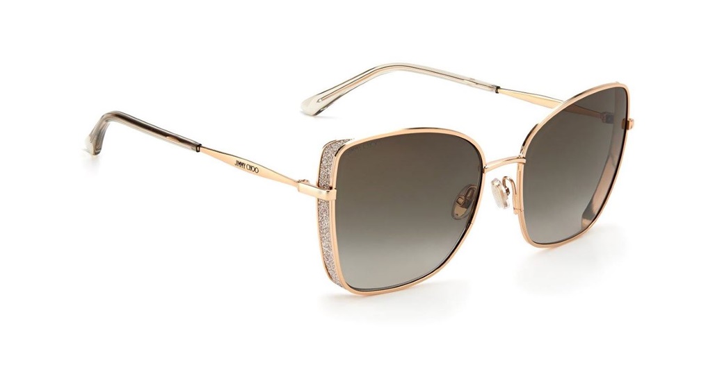 فيمتازان بحافة معدنية تحمل شعار JIMMY CHOO. يتوفّر هذا الموديل باللون الأسود مع تفاصيل كوارتز ناعمة سوداء وعدسات ذهبية عاكسة؛ وباللون الكريستالي مع تفاصيل كوارتز ناعمة بلون الشفق القطبي وعدسات زرقاء متدرجة؛ وبالبني الرمادي مع تفاصيل كوارتز ناعمة كريستالية وعدسات رمادية متدرجة؛ وباللون النيود مع تفاصيل كوارتز ناعمة ذهبية وعدسات بنيّة متدرجة.