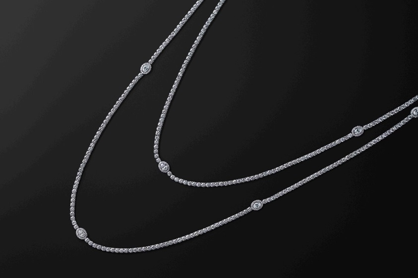 تجمع قلادات نودو الجديدة أربعة أحجام متدرّجة من الأحجار، من الماكسي إلى الكلاسيكي فالصغير وصولاً إلى الصغير جدّاً، في حوار بصري يمنح التصميم انسيابية لافتة وتوازناً راقياً. ويمنح هذا التفاعل إيقاعاً طبيعياً لخطّ العنق، مع الحفاظ على القصّة الأيقونية التي تميّز نودو. وتُضفي قصّة كليسيدرا بعداً إضافياً على التصميم وتعزّز التلاعب بالضوء، من دون المساس بجوهر نودو، إذ يسمح وجها الحجر له بالاقتراب من البشرة، ليُنشئ علاقة هادئة وحميمة بين القطعة ومرتديتها.