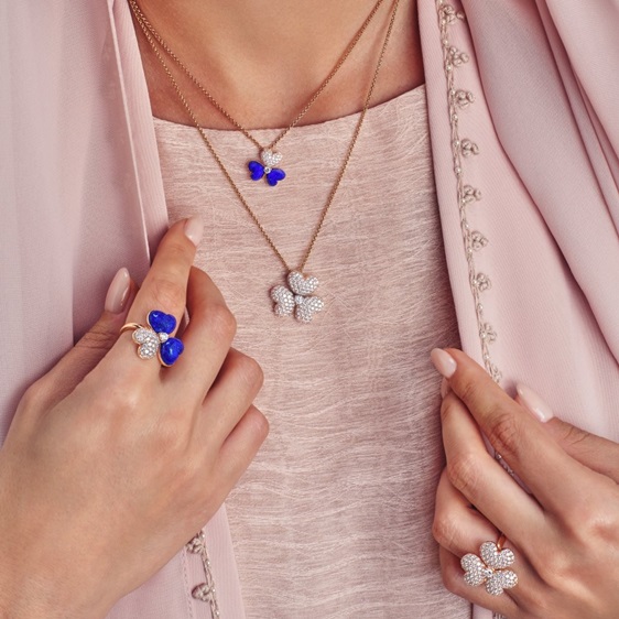 يتألق قلادة "إنشانتيد لوتس بلوم" بألماسة مستديرة في المركز، تحيطها أربع بتلات متجهة نحو الأعلى. ترصع الألماسات المنحنيات الرشيقة للبتلات المائلة وكأنها تلتقط ضوء الشمس، في مشهد يعيد تخيل معجزة الطبيعة الهادئة من خلال عدسة الأناقة العصرية والبساطة الراقية. صممت القطعة لترافق المرأة من النهار إلى المساء، في احتفاء بالحياة والنور والإطلالة الدائمة نحو المستقبل.